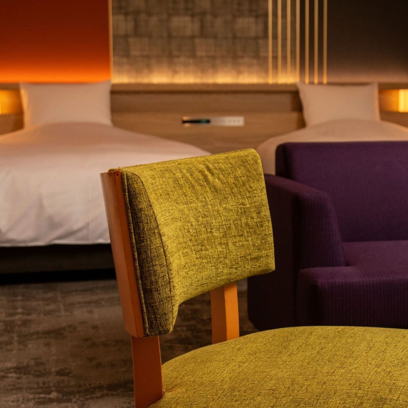 「武家屋敷」をコンセプトに、安らぎを感じられる和を取り入れたシンプルモダンなデザインに、加賀友禅に用いられる加賀五彩の華やかさをプラス。伝統的な色彩が奥ゆかしく、ゆったりとしたお時間をお過ごしいただけます。 70平米のラグジュアリースイートや、トリプル仕様にも変化し3名様でのご宿泊が可能なツインプラスのお部屋が家族旅行や女子旅に人気。
