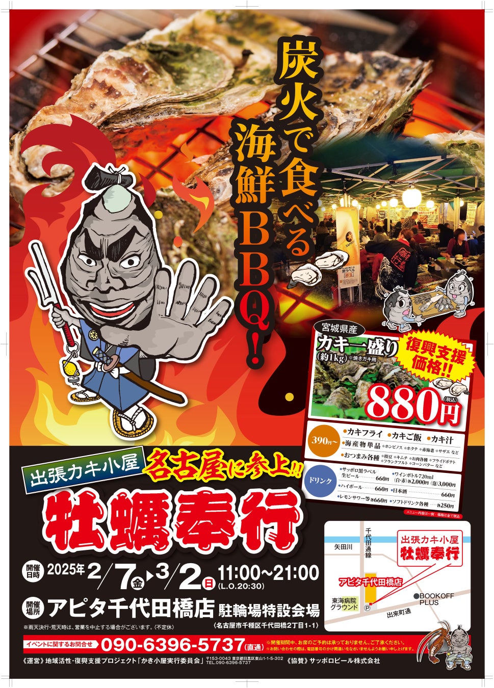 名古屋市:アピタ千代田橋で、出張カキ小屋BBQ!! 期間限定開催!!《 宮城県産殻付き牡蠣が約1kg880円!! 》