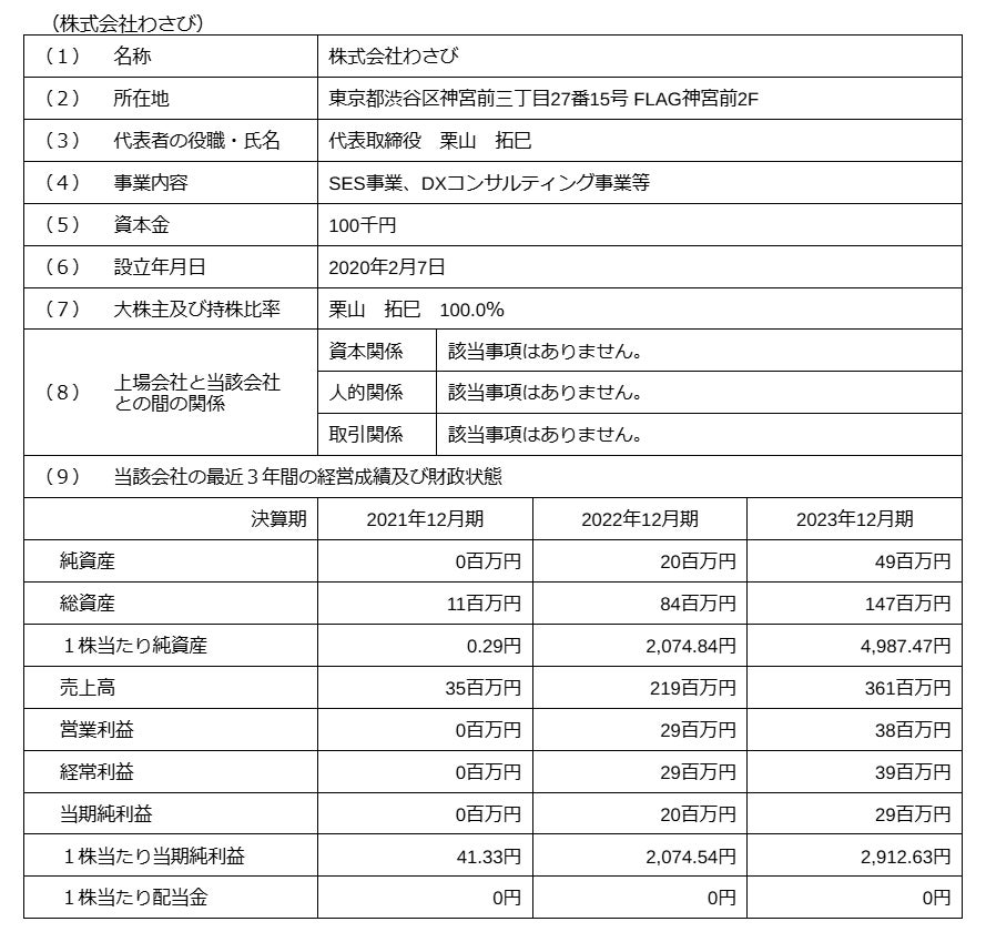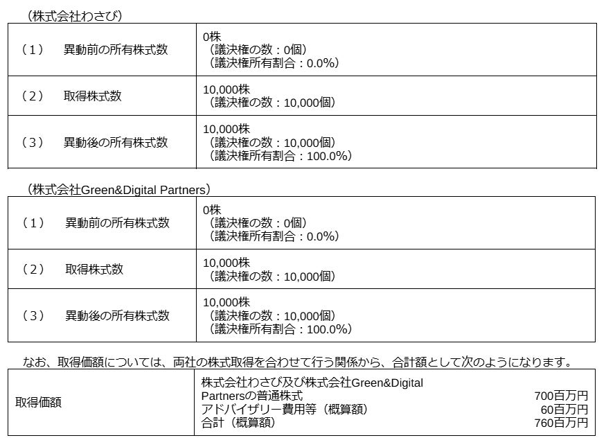 株式会社わさび及び株式会社Green&Digital Partnersの株式の取得(子会社化)に関するお知らせ