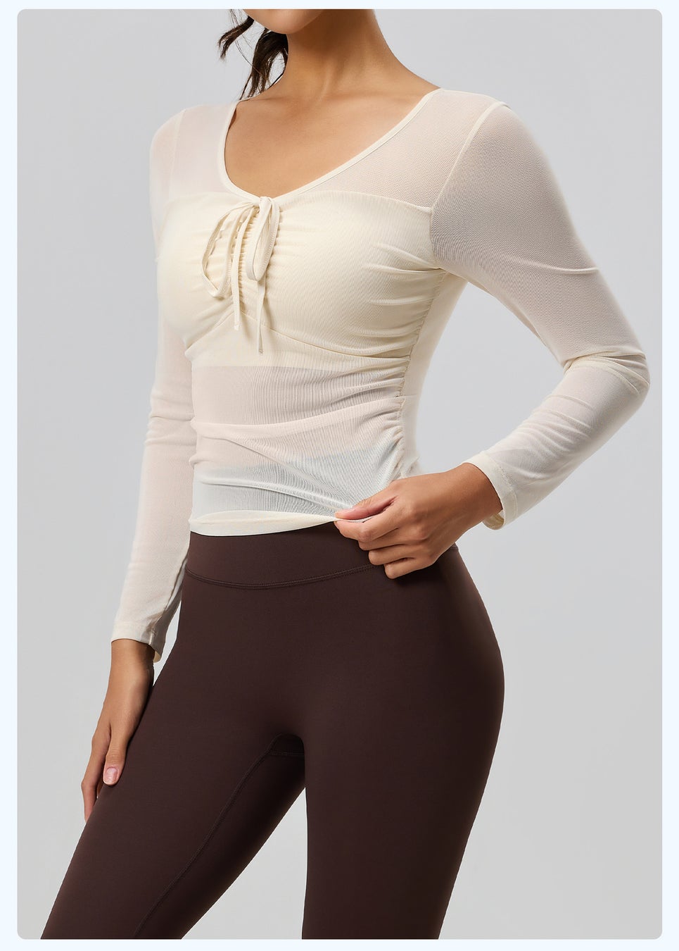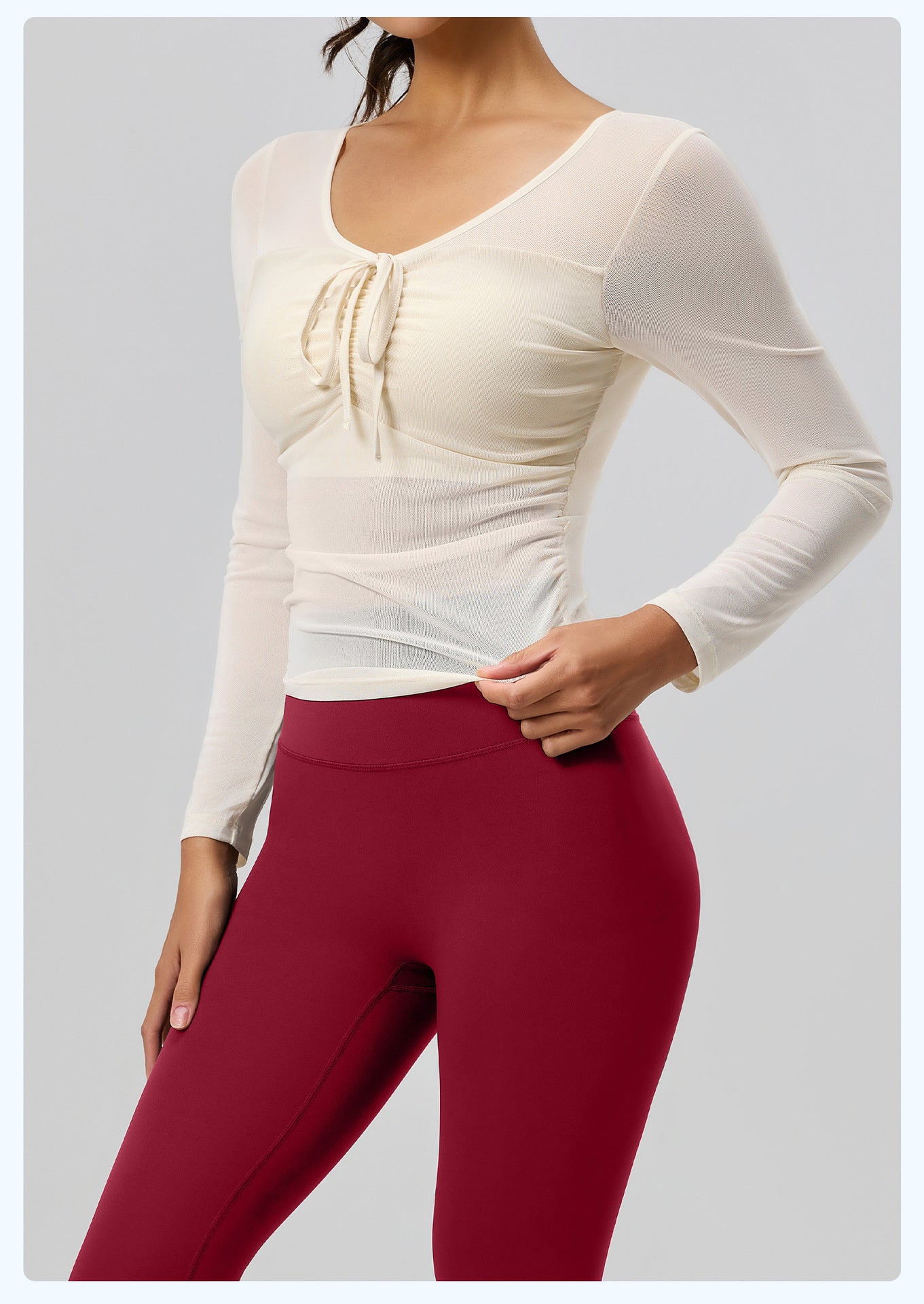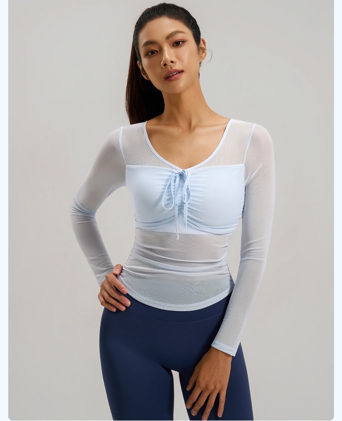 ヨガウェア レディース トップス 長袖 透け感 メッシュ スポーツウエア トレーニングウェア フィットネス ピラティス カジュアル 快適 ジム ストレッチ 伸縮性 シンプル 吸汗 速乾 快適
