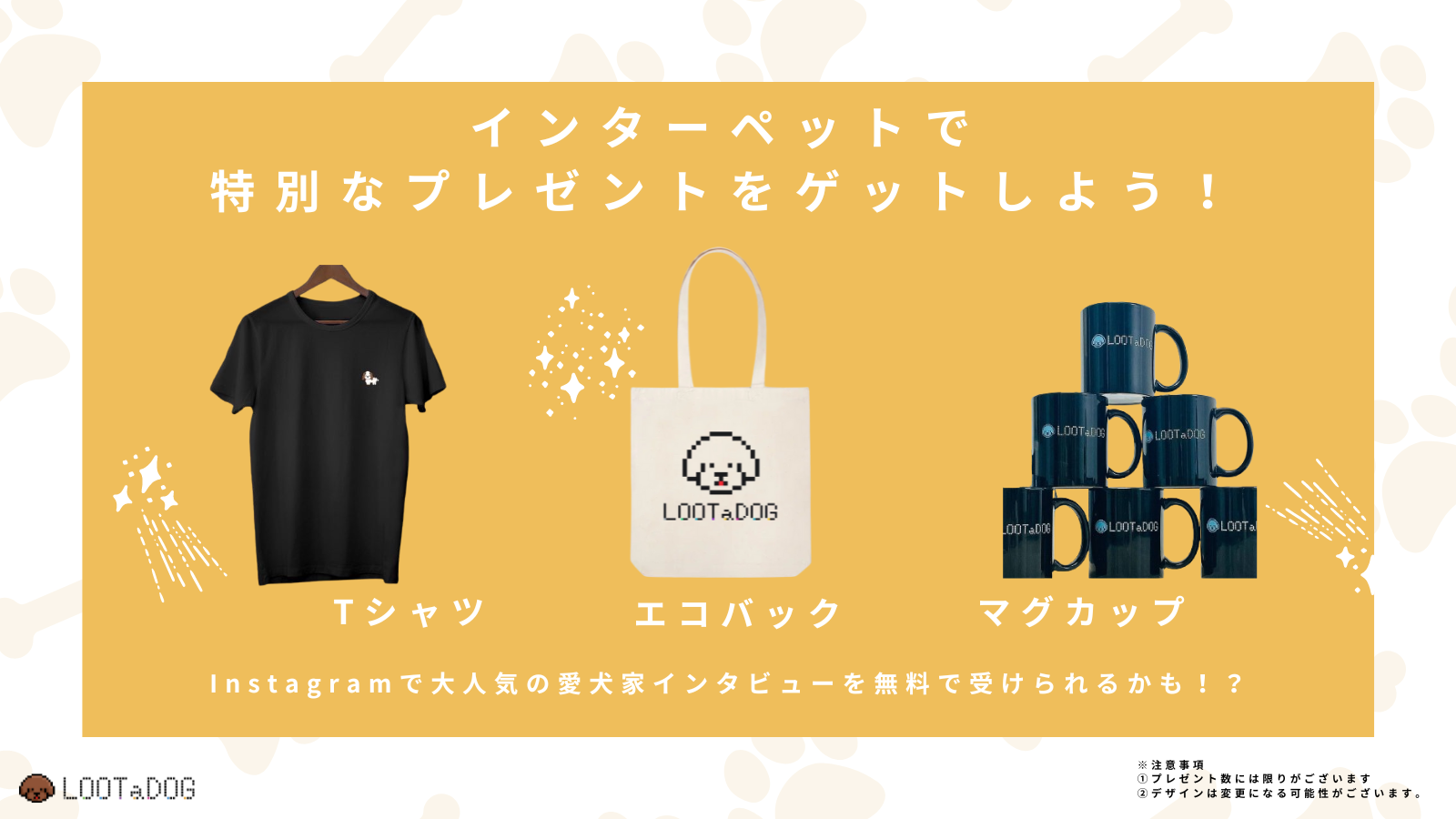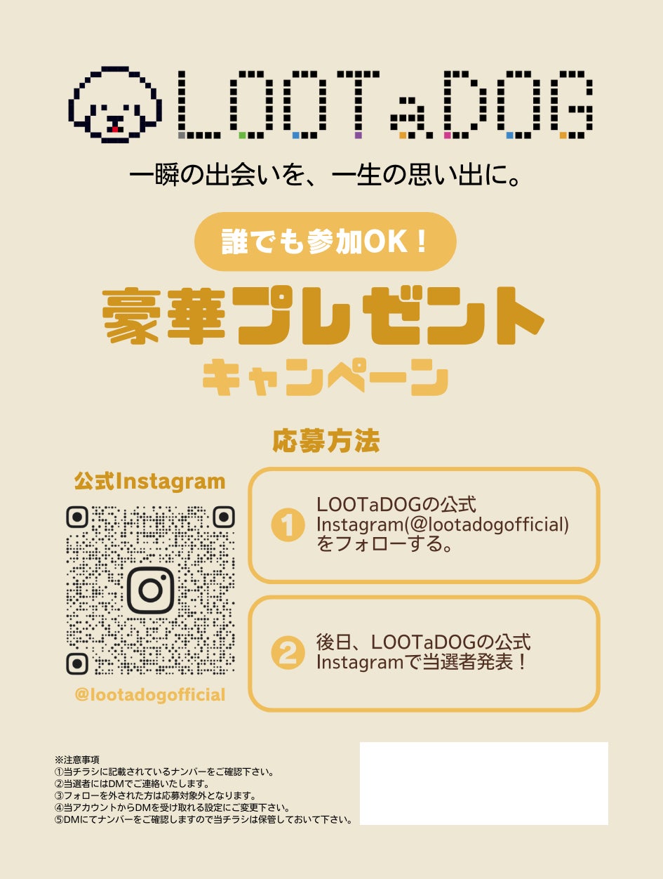 ①LOOTaDOGのInstagramをフォローいただくことで、先着で下記の中からオリジナルグッズを一つプレゼント!