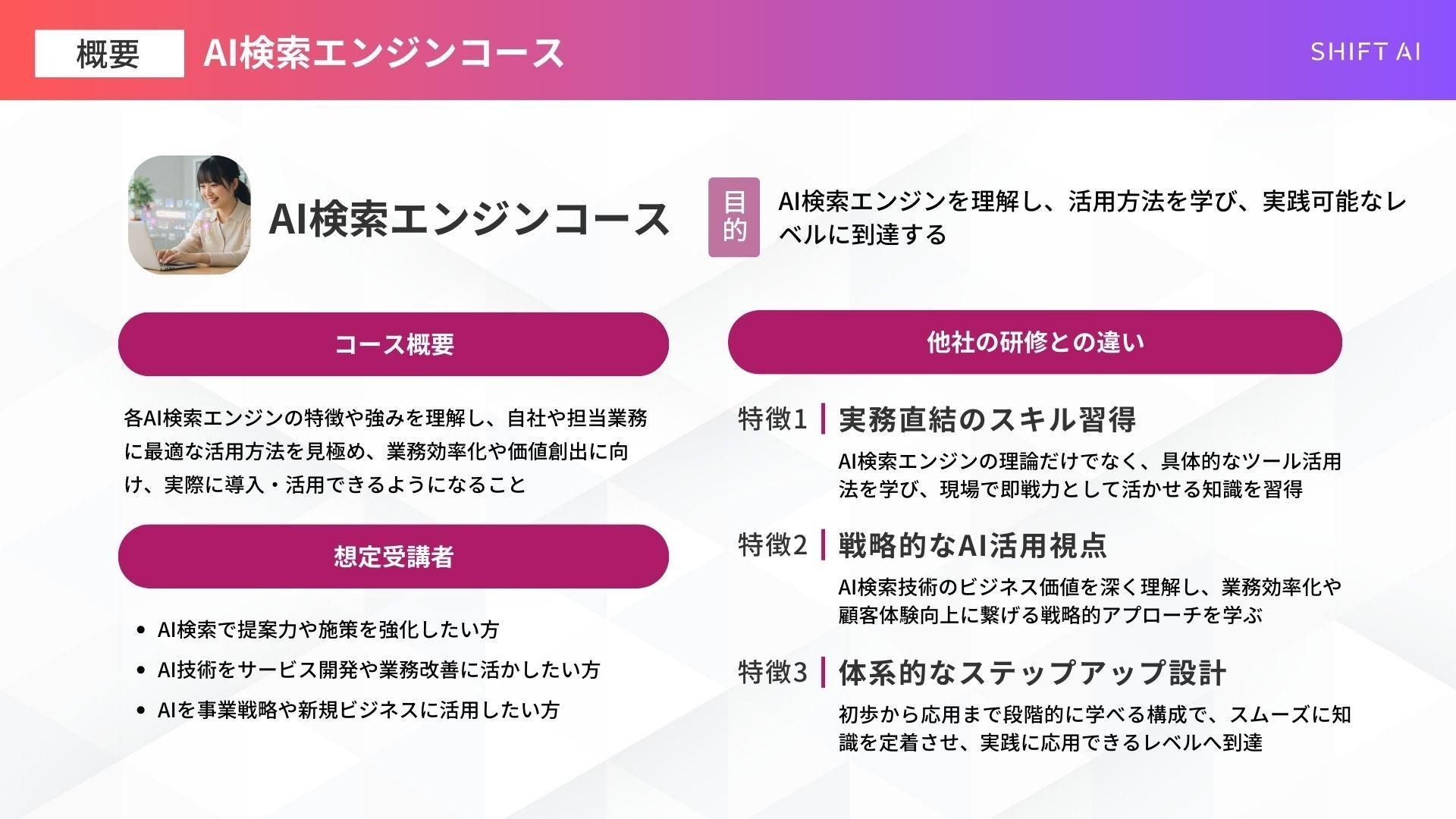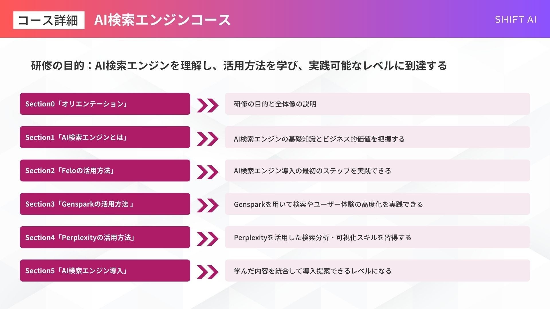 法人向け生成AIリスキリングサービス SHIFT AI for Biz【AI検索エンジンコース】2025年4月8日より受付開始