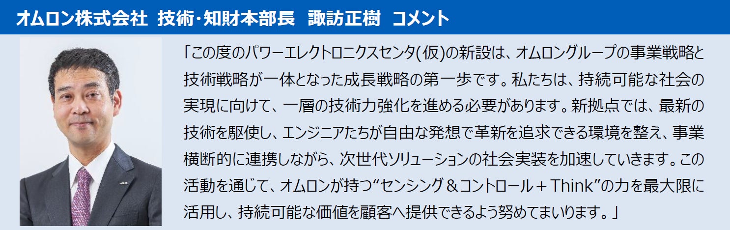 オムロン株式会社(本社: 京都市下京区、代表取締役社長 CEO: 辻永順太)は、2025年10月、長期ビジョン「Shaping the Future 2030(略称:SF2030)」で掲げる社会的課題の1つ「カーボンニュートラルの実現」を達成するため、新たな研究開発拠点「パワーエレクトロニクスセンタ(仮)」を京都府向日市にある桂川事業所内に開設します。パワーエレクトロニクス領域に対しては、本拠点の設立をはじめ、今年度からの3年間で約50億円を追加投資するほか、100名規模のエンジニアを採用することで、技術開発力の向上による事業成長図ります。そして、2030年には、関連事業において2,000億円の売上達成を目指します。