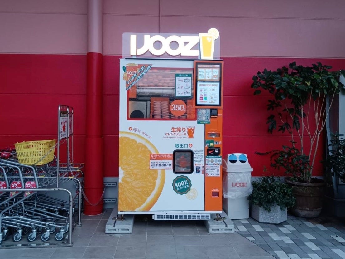 生搾りオレンジジュースの自動販売機を展開するIJOOZ(アイジュース)株式会社は、2024年11月6日から「三井ショッピングパーク ららぽーと堺」北西エントランス付近で、生搾りオレンジジュース自動販売機の稼働を開始しました。