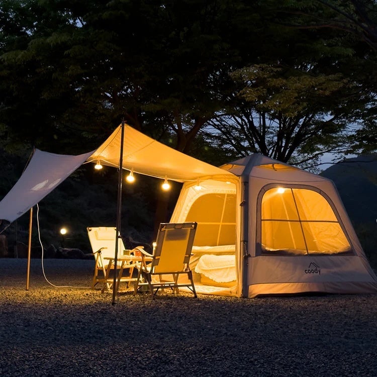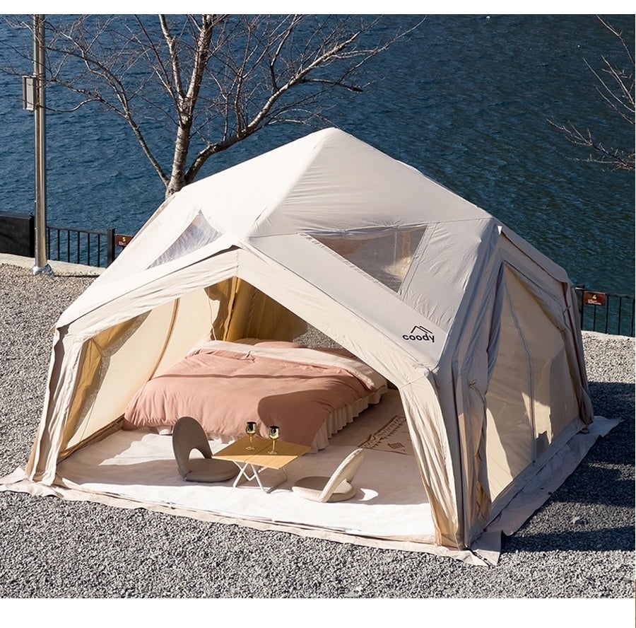 設営が簡単で快適な居住空間を提供するcoodyのグランピングエアテントを、実際にご覧いただけます。サイズ感や素材感を体感できる貴重な機会です。