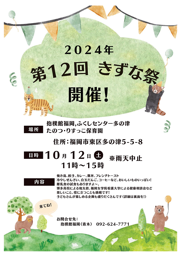 場所:抱撲館福岡、 ふくしセンター多の津、たのつ・りすっこ保育園(福岡市東区多の津5-5-8)