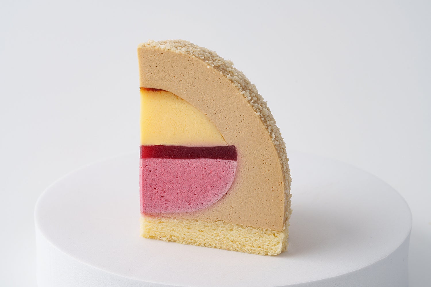 贅沢な味わいの層 甘酸っぱいフランボワーズムースとフランボワーズジュレを、香り高いアールグレイ紅茶ムースでふんわりと包み込んだ、贅沢な層仕立て。優雅な紅茶の風味と、華やかなベリーの酸味が口の中でやさしく溶け合い、冬の特別なひとときを上品に演出します。