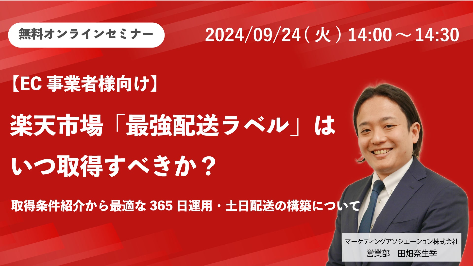 マーケティングアソシエーション株式会社 『楽天市場「最強配送ラベル」はいつ取得すべきか? 取得条件紹介から最適な365日運用・土日配送の構築について』 |