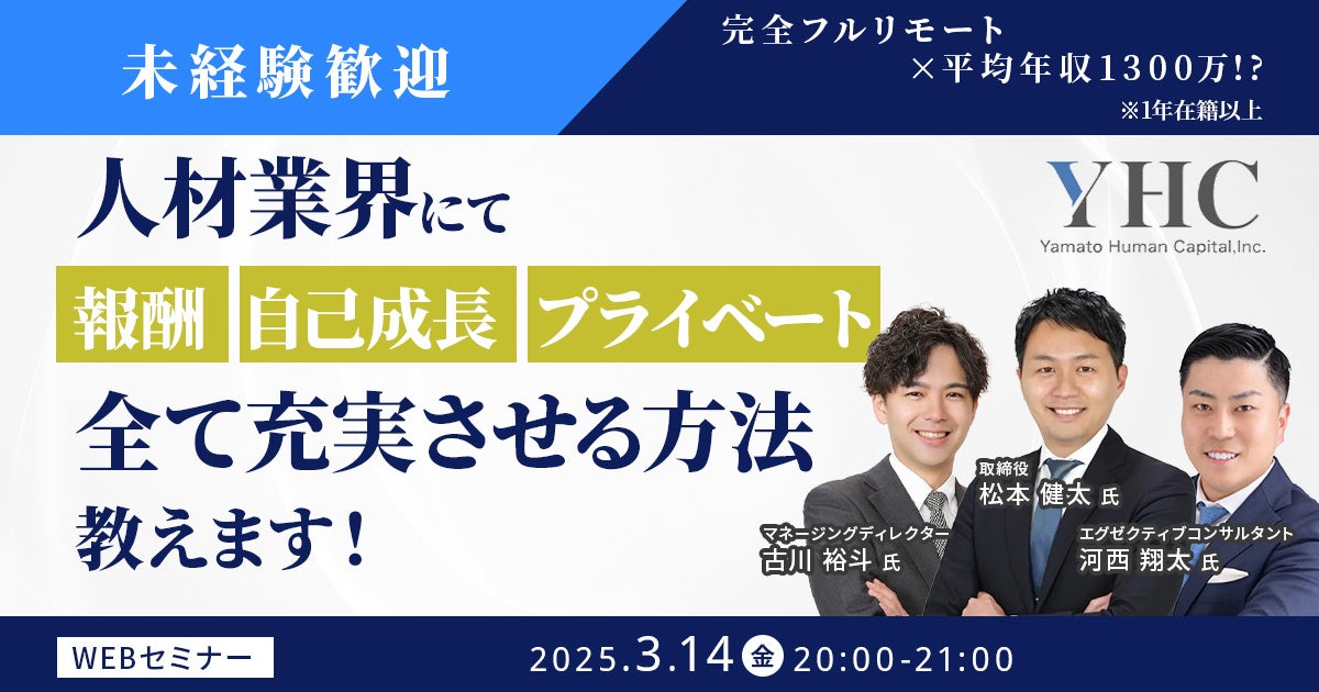 【3/14開催】完全フルリモート×平均年収1300万!? 人材業界にて報酬、自己成長、プライベート全て充実させる方法教えます!