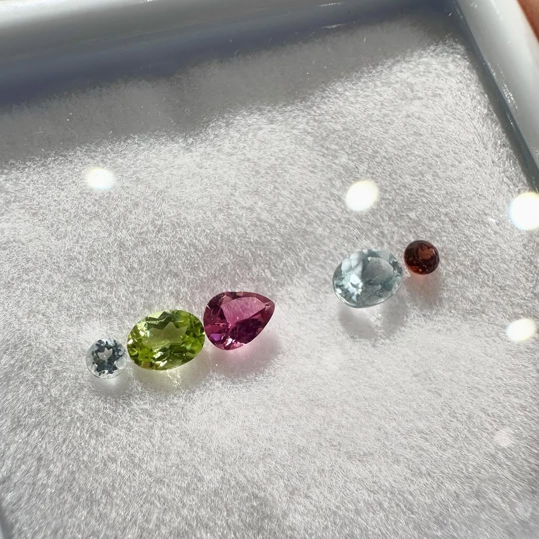 今回のストーンマルシェでは、「グランディディエライト」や「インペリアルトパーズ」など、”希少石”と言われるものもご用意しています。また、宝石のカットも多彩で、ラウンドやオーバルだけでなく、トリリアント、スクエア、ハートといった形も取り揃えております。お気に入りのカットを見つける楽しさも、このイベントならではです。