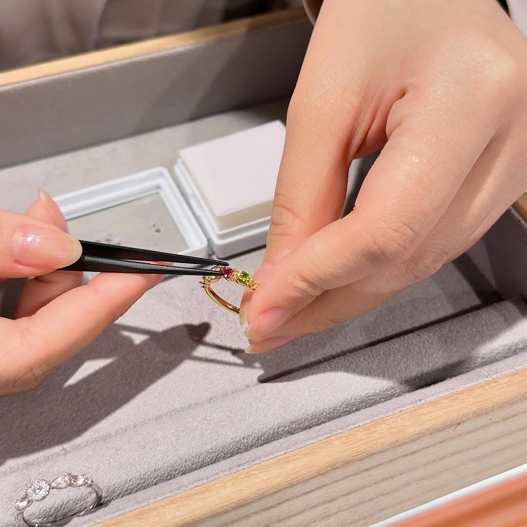 ご自身の誕生石に、ご家族の誕生石や思い出の色を組み合わせることで、世界にひとつだけのリングが完成します。また、差し色として好きな宝石を取り入れることで、デザインにアクセントを加えることもできます。このオーダー会を通じて、ご家族とのつながりをジュエリーに表現してみませんか。