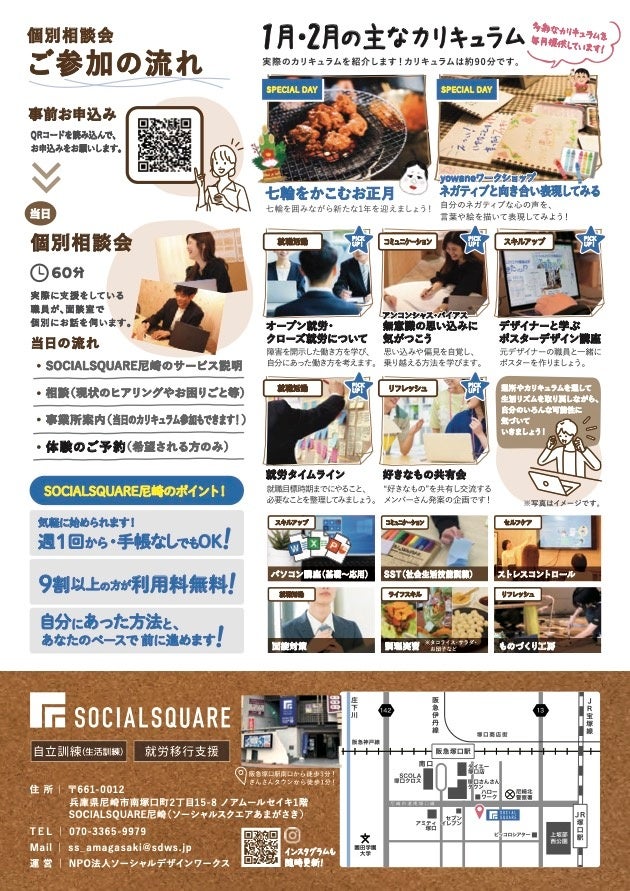ソーシャルスクエア尼崎店(運営:NPO法人ソーシャルデザインワークス 代表理事:北山剛)では、2026年1月より、個別相談会を開催いたします!