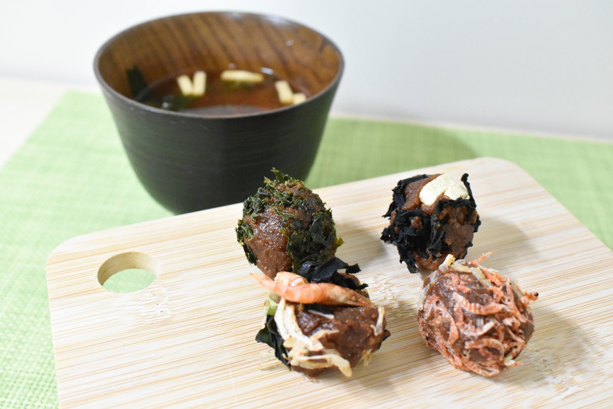 久世福商店の「毎日だし」をつくる中原水産株式会社(本社:鹿児島県枕崎市)※と久世福商店バイヤーによる、オリジナル味噌玉作り体験です。だしと味噌に具材を選んで入れるだけで、簡単においしい即席味噌汁が完成します。味噌玉はその場でお湯を入れてミニおにぎりと一緒においしくいただきます。