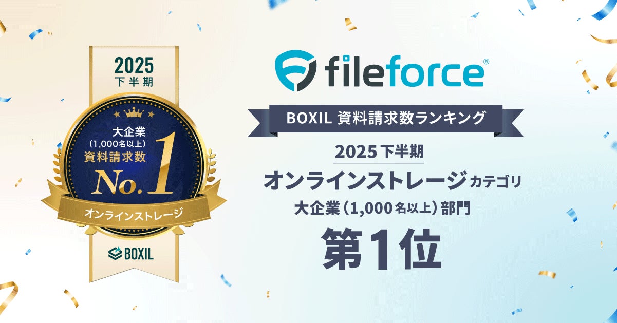 Fileforce「2025年下半期 BOXIL資料請求数ランキング」オンラインストレージ 大企業向け1位に選出