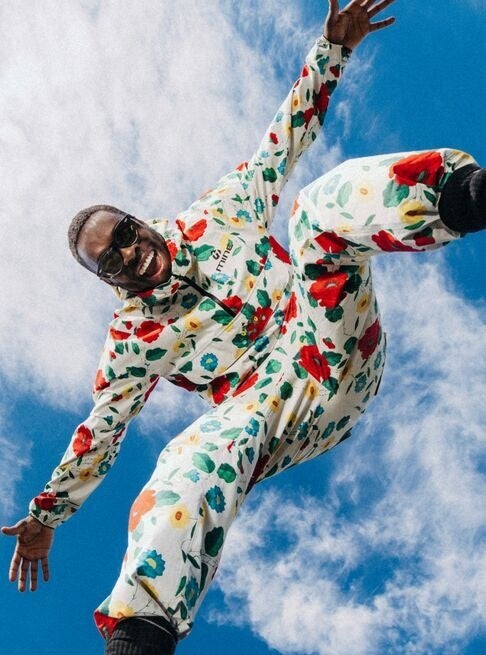 3Lトポ素材は驚くほど伸縮性が高く、前面と背面のグースダウンパネルは動きやすさを犠牲にすることなく体を暖かく包みます。Antique Whiteに花柄の刺繍を施した完全防水の生地は、地元バーモント州バーリントンのクラフトアトリエ、キティ・バッドハンズの協力で実現した特別な素材です。