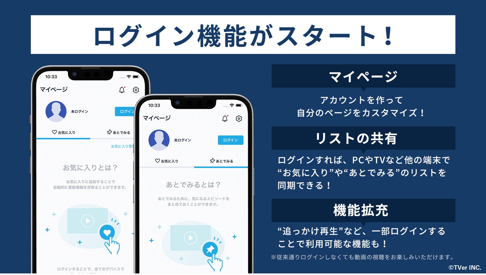 また、予定されている在京民放5社のリアルタイム配信(地上波同時配信)を視聴する際に、「TVer ID」でログインしているユーザーはリアルタイム配信開始後でも番組冒頭から視聴を楽しめる「追っかけ再生」の機能を利用することが可能になります。