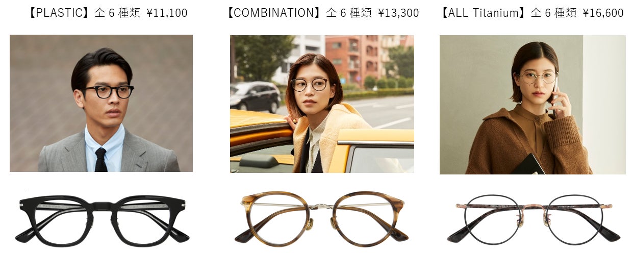 WORK :6型各3色 全18種類 11,100円~16,600円(税込・セットレンズ代込)