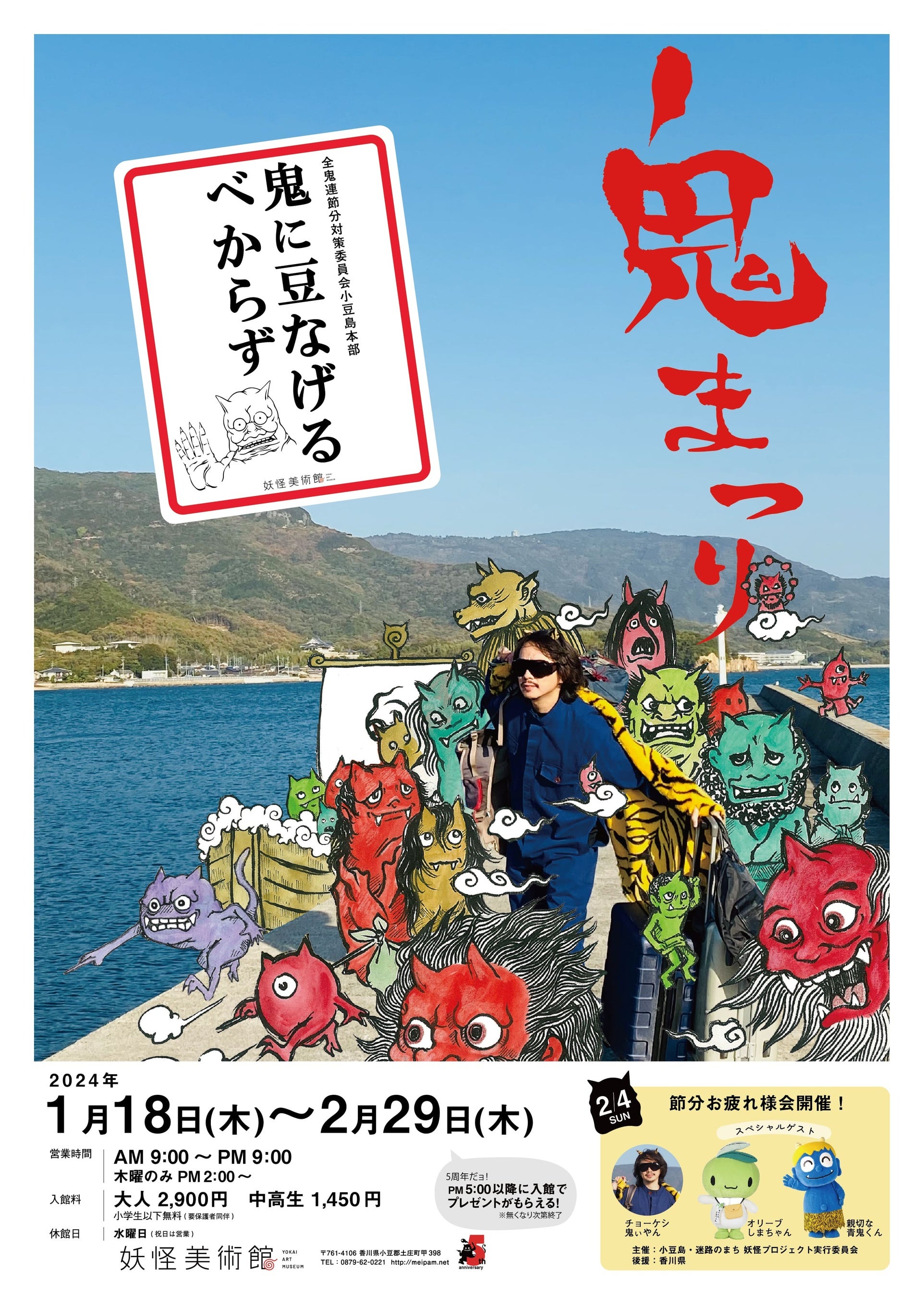 2025年2月2日には、鬼まつりをさらに拡大。大阪万博に先駆けて「妖怪万博」を小豆島で開催します。妖怪にまつわる作品展示だけでなく、妖怪のコスプレイヤーによるファッションショーや妖怪の専門家によるトークショー、妖怪に関わる日本全国の造形作家さんなどによる商品の販売や飲食ブース出店など、閑散期に賑わいを創出するためのより大規模なイベントを実施します。また、2023年5月から徳島で開催されている妖怪のイベント「四国妖怪フェスティバル」の第3回目も同会場で同時開催することが発表されました。