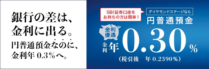SBI証券の口座保有者に円普通預金年0.3%を提供