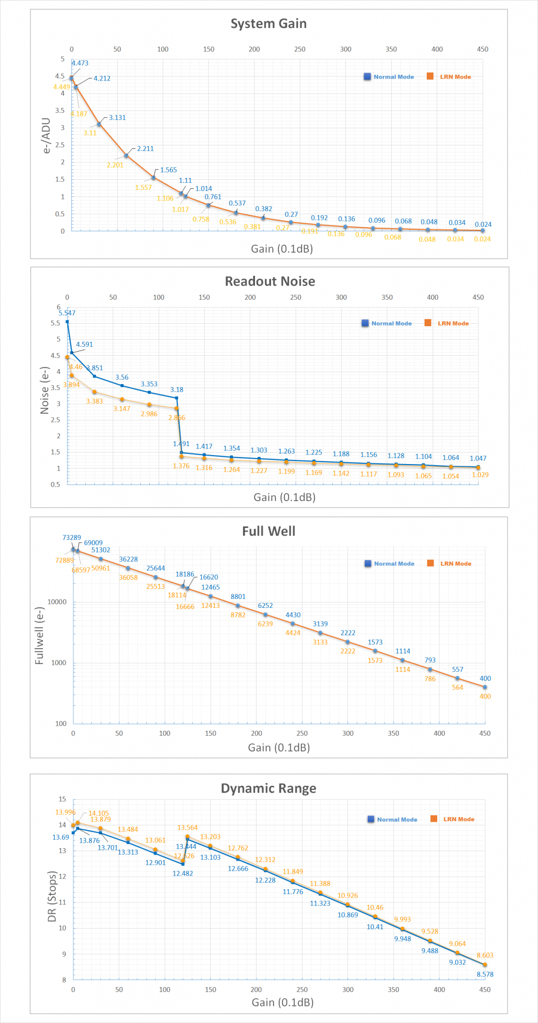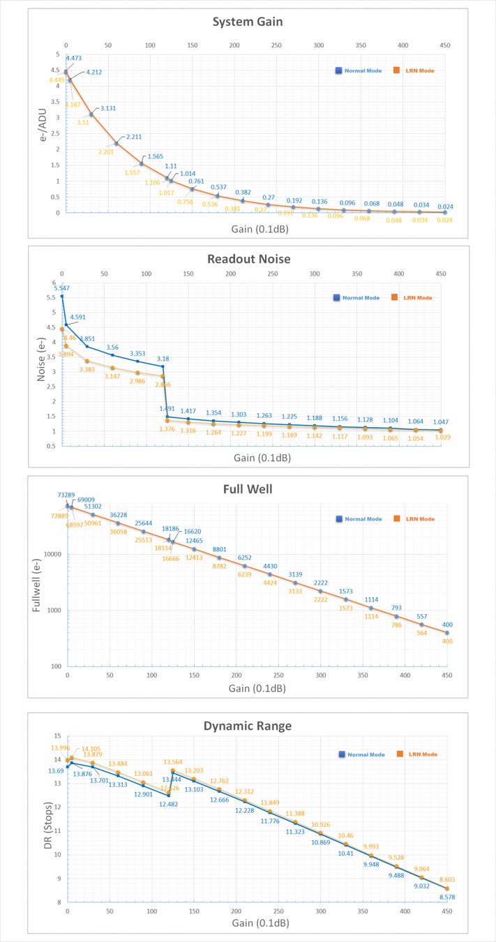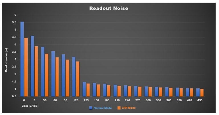 読み出しノイズ:5.5e~1.0e(ノーマルモード) / 4.4e~1.0e(LRNモード)