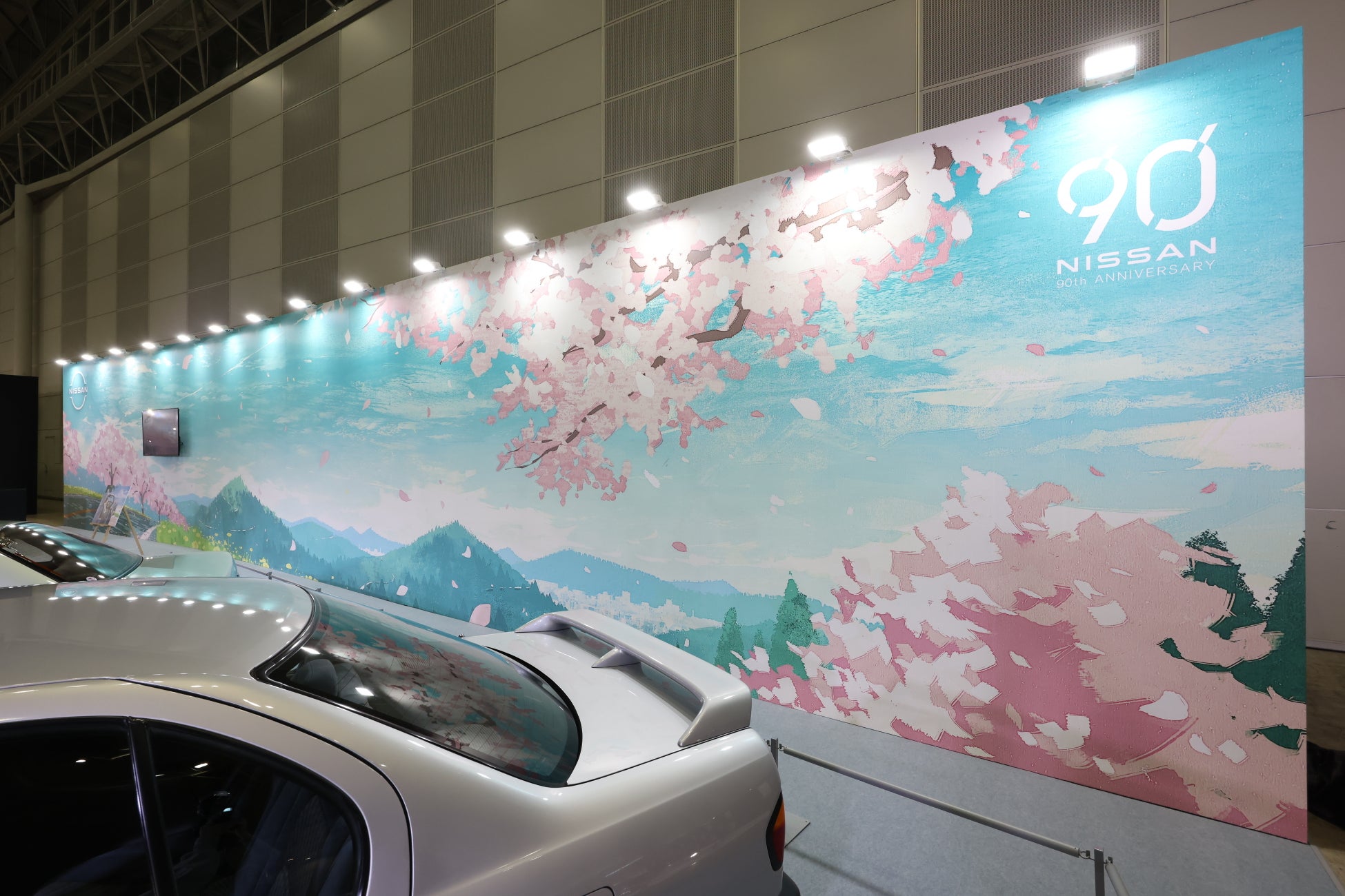 また、イラストレーター・げみさんにご協力いただいた、幅およそ20mのオリジナル巨大イラストを公開。桜並木が並ぶ道が遠くの山々へつながる、春をテーマとした壮大な風景が、NISSANブースをさわやかな世界観で包み込みました。