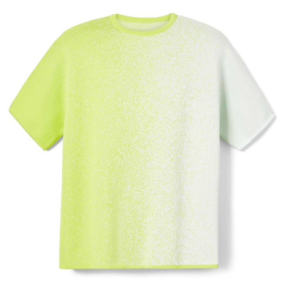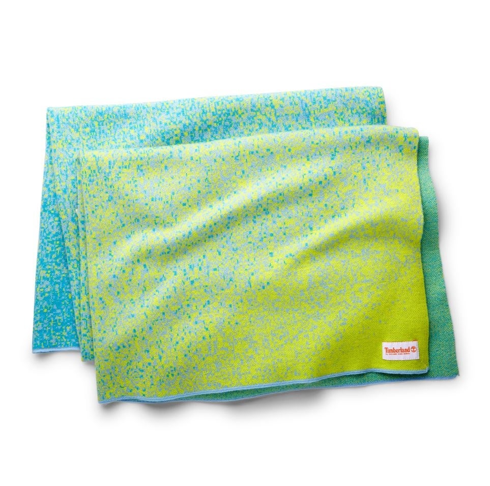 「ティンバーランド」とスザンヌのコラボレーションは今回の「フューチャー 73 」が初となり、「オリジナルイエローブーツ」に加えて、新作のスリッポンクロッグと3型のアパレル、ブランケットマフラーをご用意いたしました。2型のフットウェアは、どちらもスザンヌが独自開発した2層構造のニットスペーサー生地をメイン素材として使用。ミントブルーとシアンのカラーリングが目を引く「オリジナルイエローブーツ」は、史上初めてアッパーにニット素材を用いることでシームレス構造を可能にしたほか、シューレースシステムはクロージャー仕様にアップデートし、随所にオレンジのアクセントを効かせました。スリッポンクロッグもアッパー全体がニット素材のため快適な履き心地を実現し、甲表には太畝をデザインしています。アパレルは、 “「ティンバーランド」らしさも感じさせる全く新しいニットウェア”をコンセプトに、フットウェアと相性の良い鮮やかなシアンの女性用ニットとスカート、全体にグラデーションを施した2色展開のユニセックスのTシャツをラインナップ。そして、ブランケットマフラーは肌触りの良いエクストラファインメリノウール製で、バーズアイジャカード織りの技法で編み上げたことで表裏で2つの表情を持ち合わせる1品となっています。