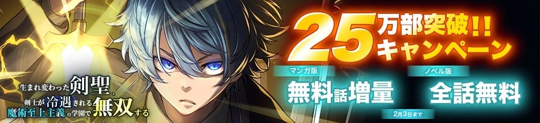 『生まれ変わった剣聖、剣士が冷遇される魔術至上主義の学園で無双する』25万部突破記念!無料話増量キャンペーン