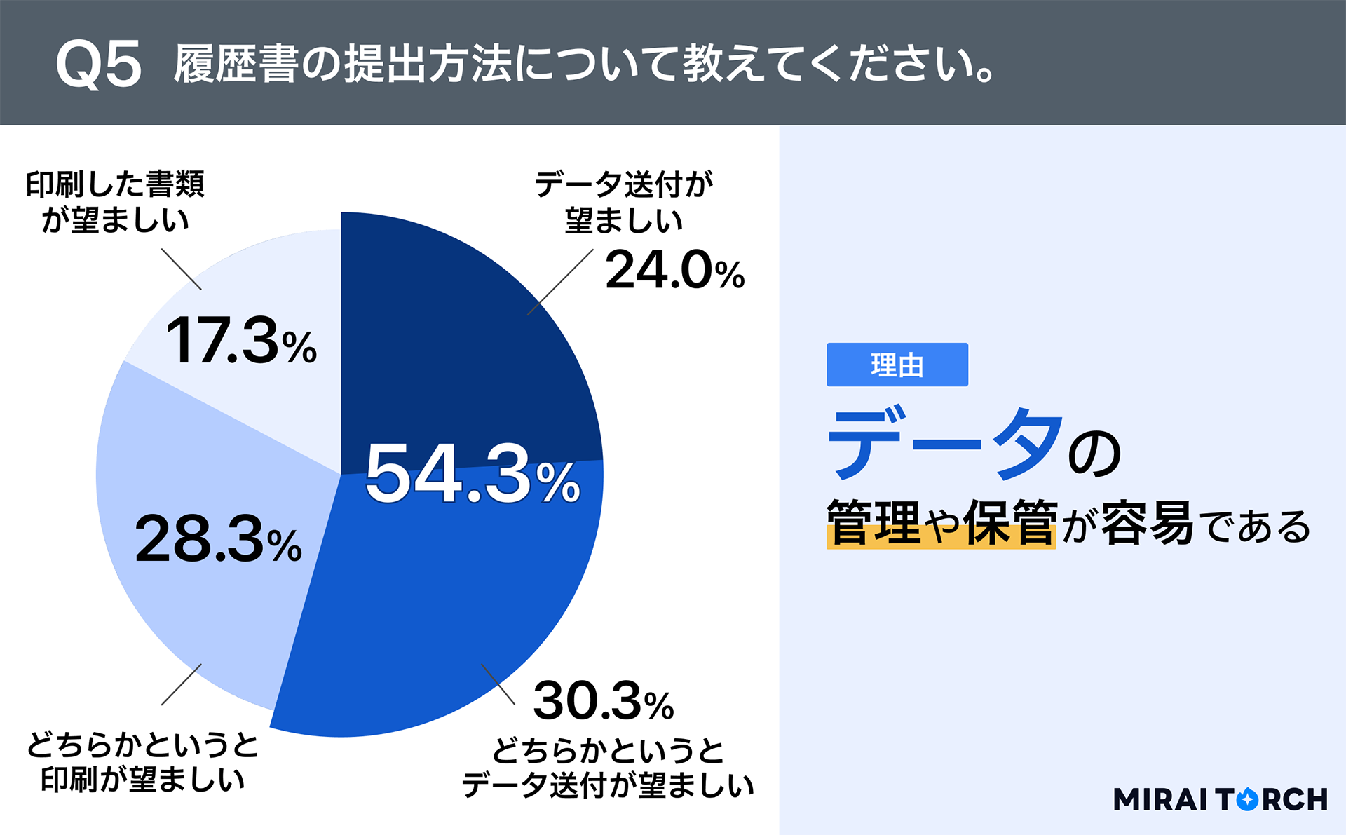 履歴書は「データ送付が望ましい」「どちらかというと望ましい」があわせて54.3%