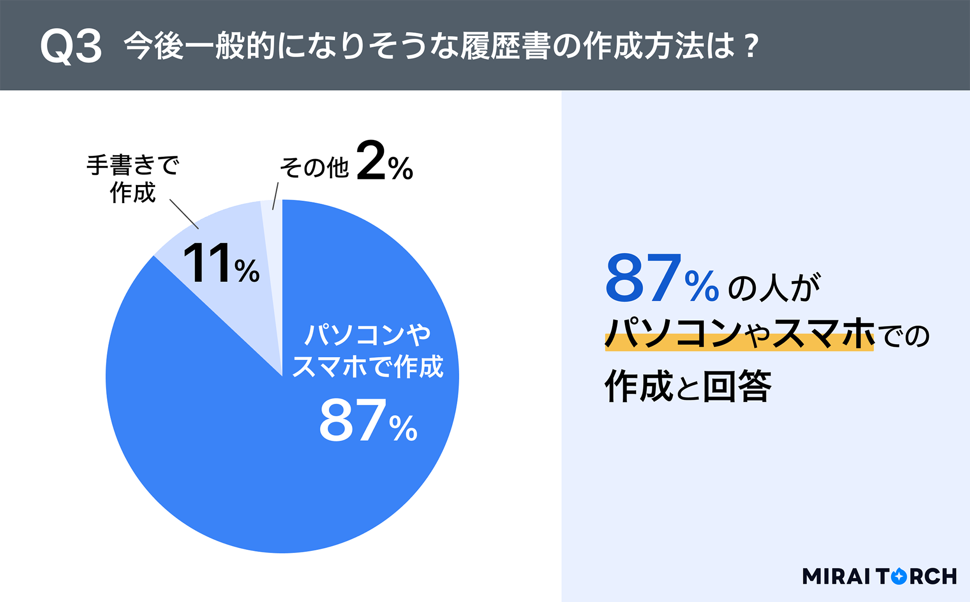 「パソコンやスマホでの作成が一般的になる」と考える採用担当者は87.0%