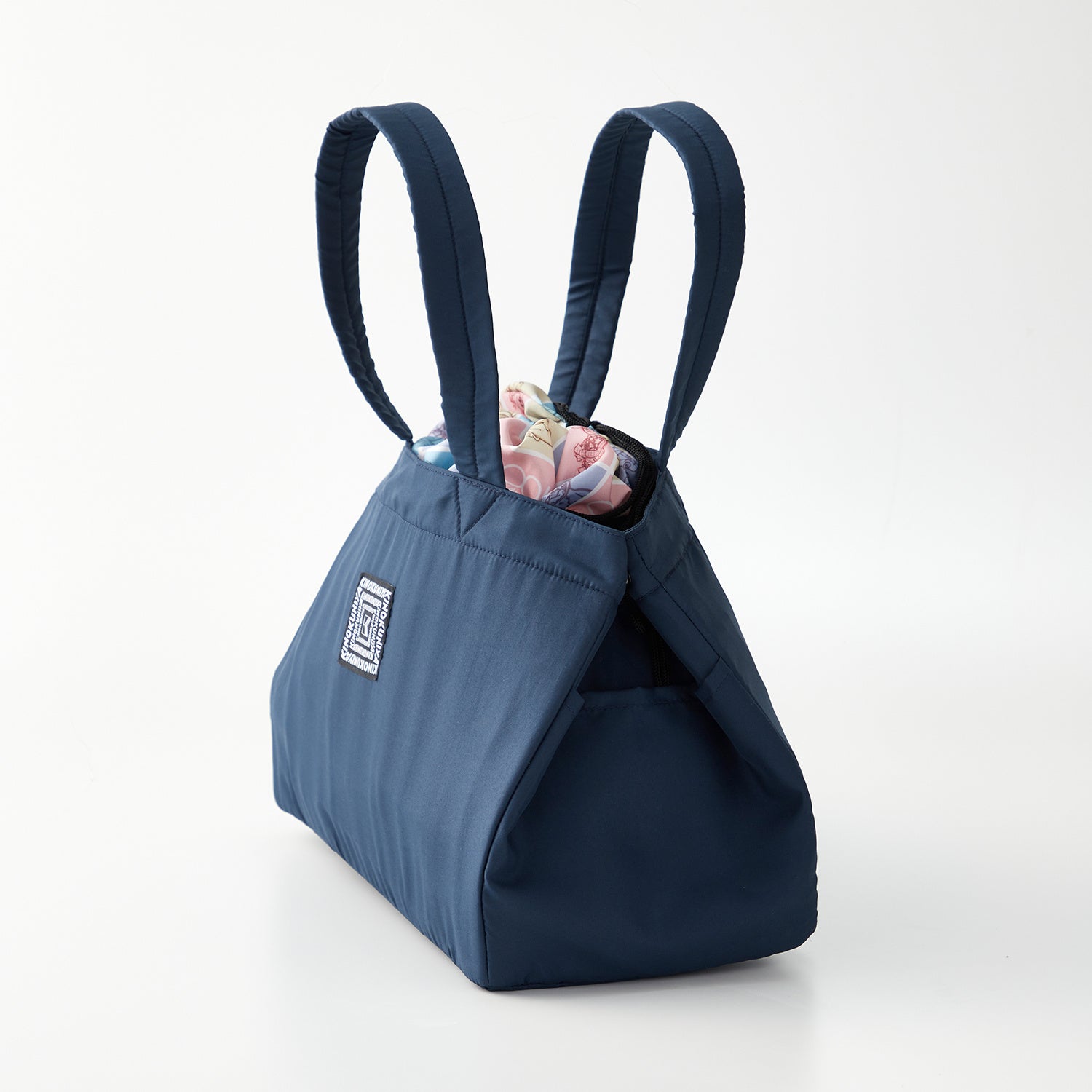 「レジかごにつけられる保冷バッグ」は、レジかごにぴったり収まり、また内側にアルミ生地を使用することで保冷・保温性を高め、スーパーなどでの食材のお買い物の際に重宝します。上部の巾着部分の生地に「Disney100」テーマの特別アートを使いつつ、全体はネイビーカラーで正面に紀ノ国屋のロゴネームをあしらいました。シックな雰囲気とディズニーの楽しさを醸し出すデザインです。