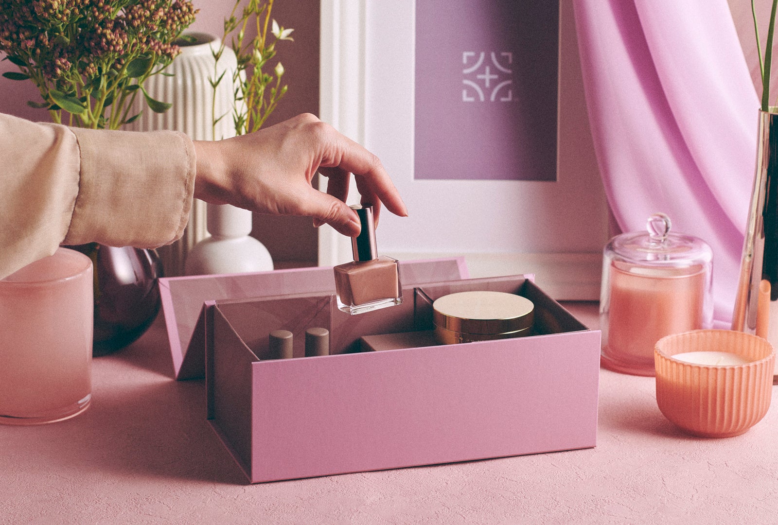 小物入れになる、モーヴピンクを基調とした3種の商品が入ったスペシャルボックスセットも登場