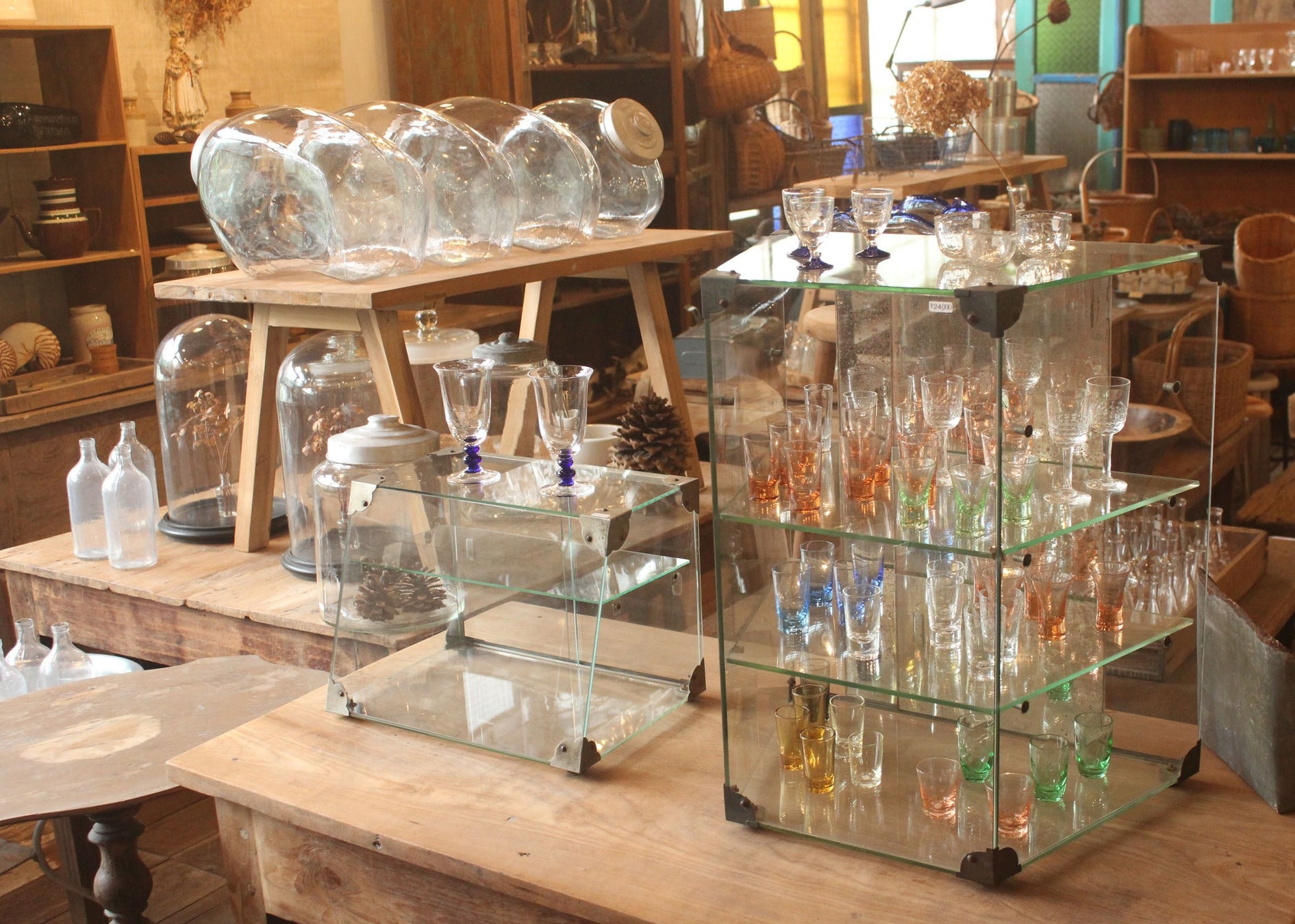 昭和レトロなうつわや古いガラスビン、インドネシアの小家具までも取り扱う、古モノ好きが訪れる古道具屋さん!岡山県のくねくね道の山奥のお店からやってきます!