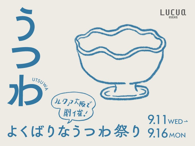 9月11日(水)~9月16日(月・祝)は、「よくばりなうつわ祭り」を開催!岡山県にあるレトロ好きが訪れる古道具屋の【海猫】、ハイセンスな作家物のうつわを取り扱う【futou】、うつわ好きのオーナーが選りすぐったうつわを展開する【COROうつわと暮らしの雑貨】の3店舗が期間限定でルクア大阪に集結します!「これだ!」と思える推しのうつわにきっと出会え
