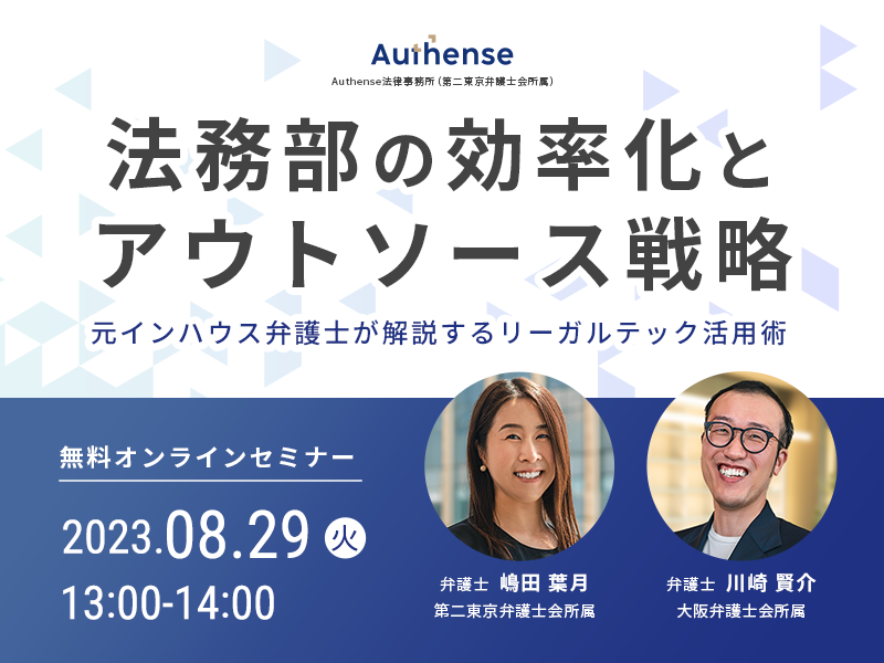 【無料ウェビナー開催2023.8.29】法務部の効率化とアウトソース戦略 元インハウス弁護士が解説するリーガルテック活用術|Authense法律事務所
