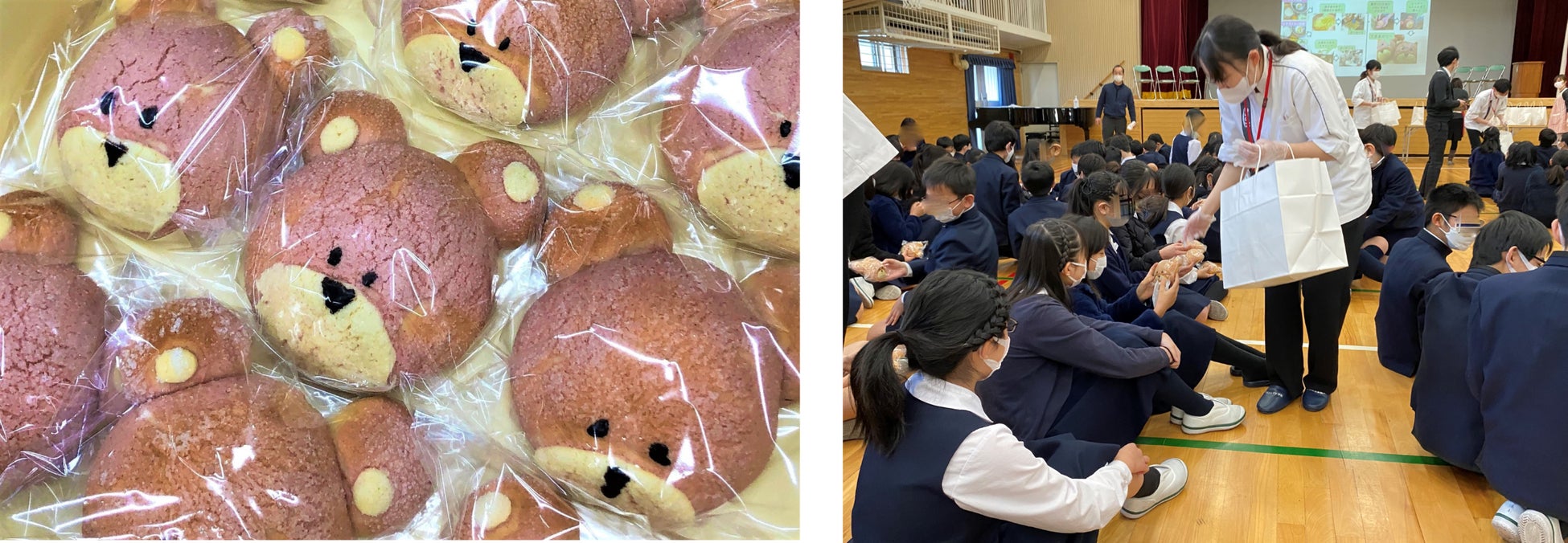 <辻󠄀製菓専門学校の最終実習レポート>地域の小学校に学生考案の「くまメロンパン」を提供!