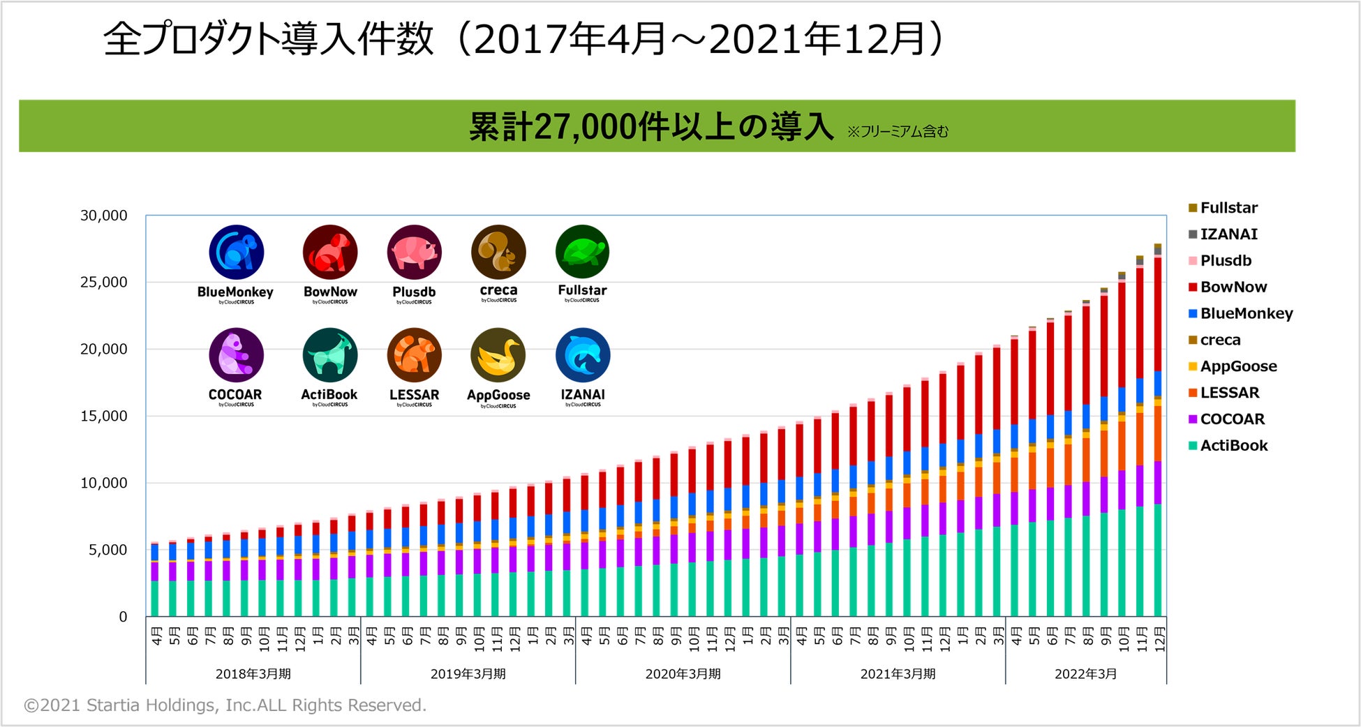 スターティアホールディングス株式会社(本社:東京都、代表:本郷秀之、コード:3393)は、連結子会社で、デジタルマーケティング事業を手掛けるクラウドサーカス株式会社(本社:東京都、代表:北村健一)において、2021年12月末時点で、全プロダクトの累計導入が27,000件を突破したことをお知らせします。また、指原莉乃さんを起用した、SaaSの総称サービス『Cloud CIRCUS(クラウドサーカス)』のCMが本年2月21日(月)から全国のテレビと、東京都内のタクシーにて再公開します。