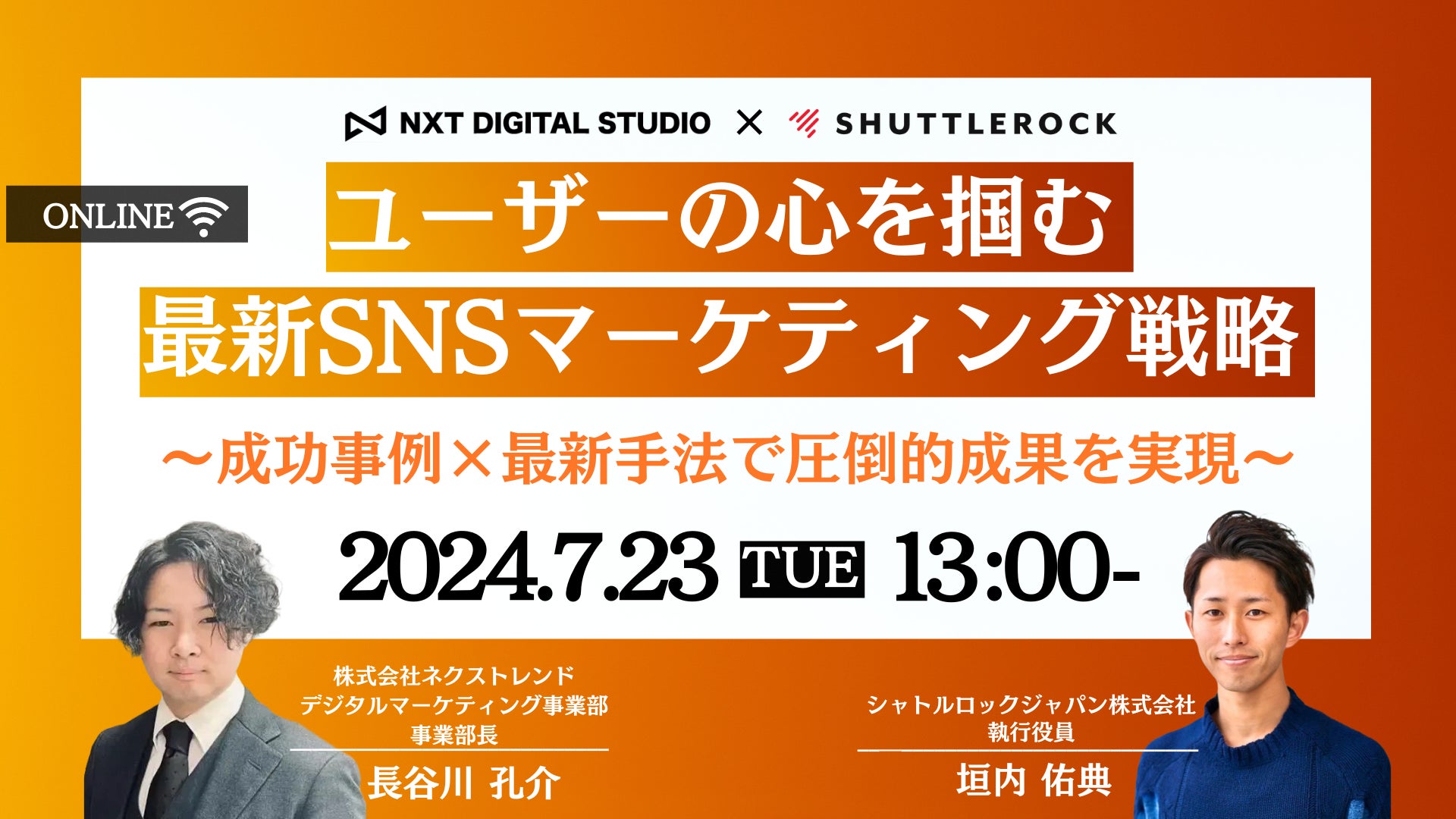 シャトルロックジャパン株式会社は7月23日(火)13:00より、株式会社ネクストレンドと共催で「SNSマーケティングの最新手法、成功法則」をテーマに、オンラインセミナーを開催します。