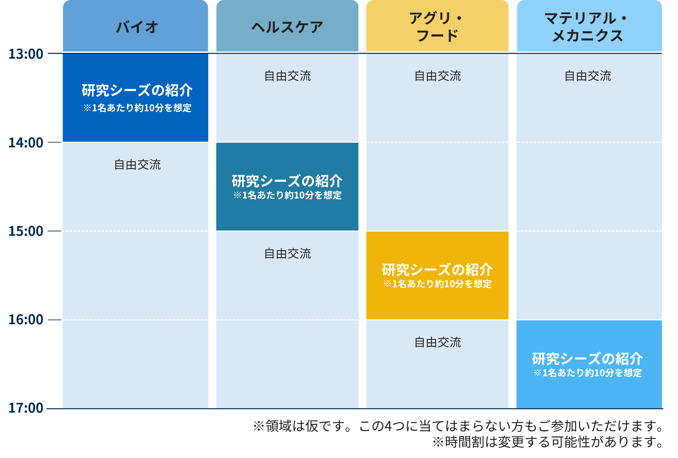 タイムテーブル(領域、時間ともに仮)
