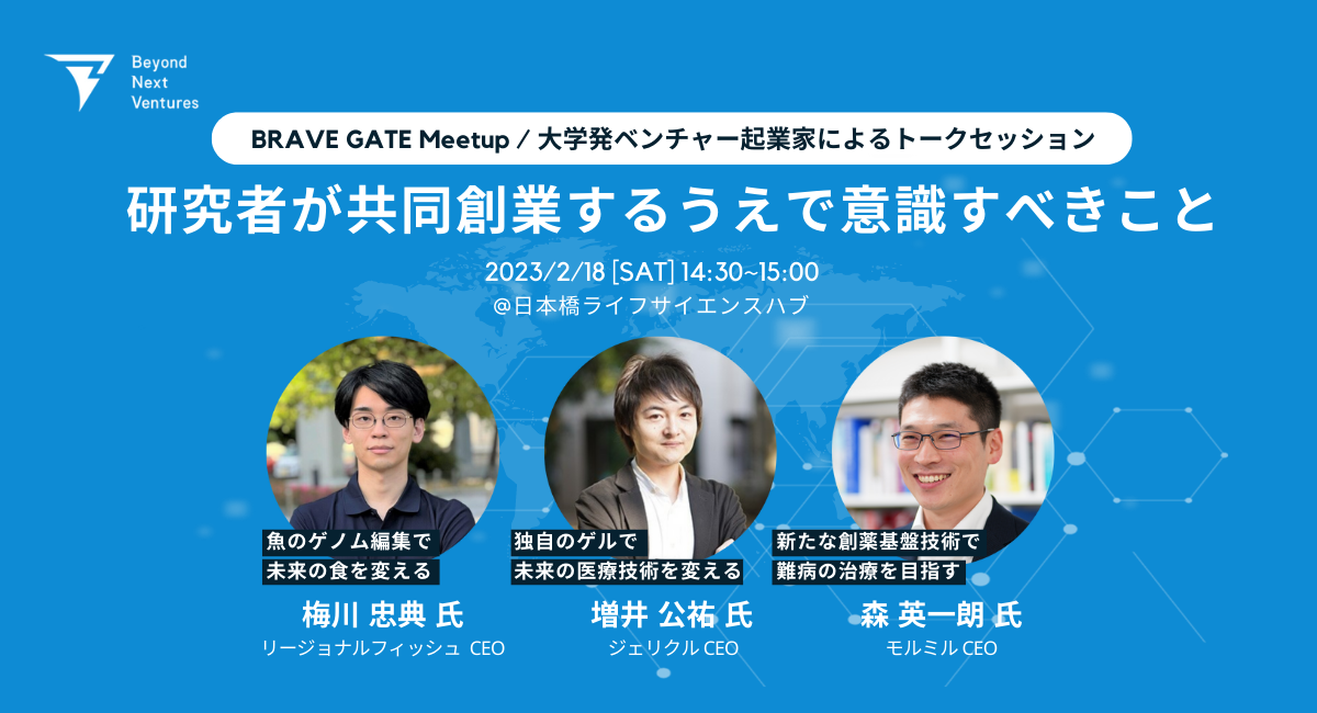 【1/27締切】未来の起業仲間を探す研究者とビジネスパーソンの交流・マッチングイベント「BRAVE GATE Meetup」を開催