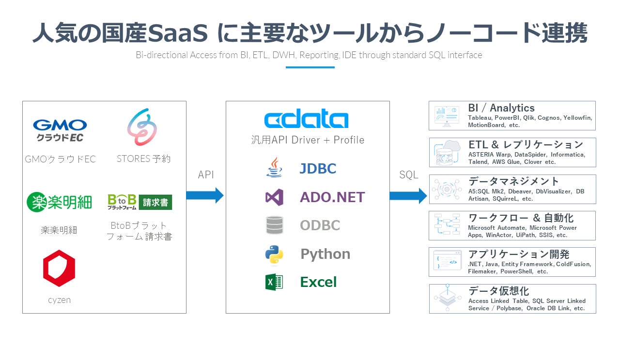 ■API Driver でSaaS と使い慣れたBI、ETL ツールとの連携を実現