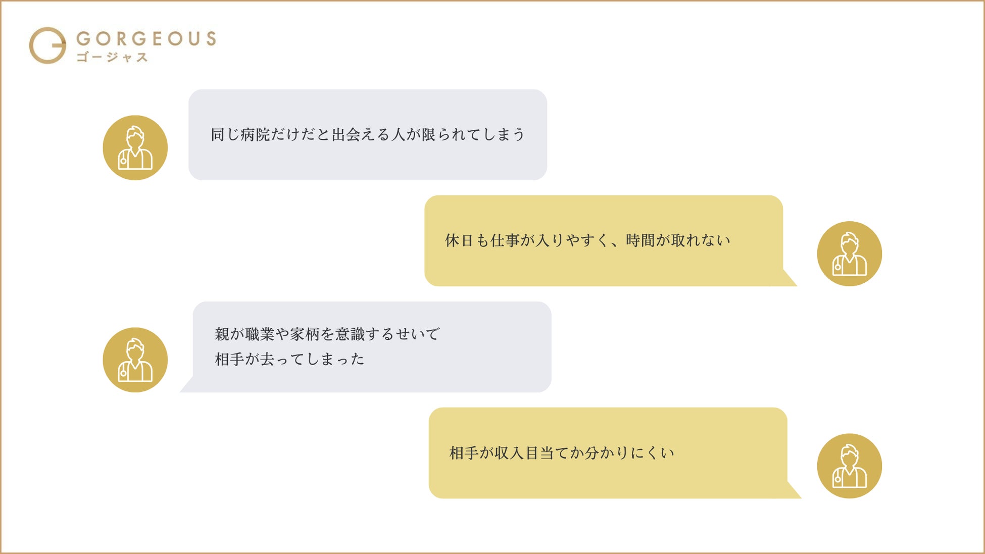 今回の調査結果を受け、ゴージャスでは「医師同士で、恋愛や結婚観について語り合う」座談会の開催を決定!同じ立場だからこそ話せる悩みや本音に向き合う場として、医師ユーザーの声を活かした企画を継続していきます。