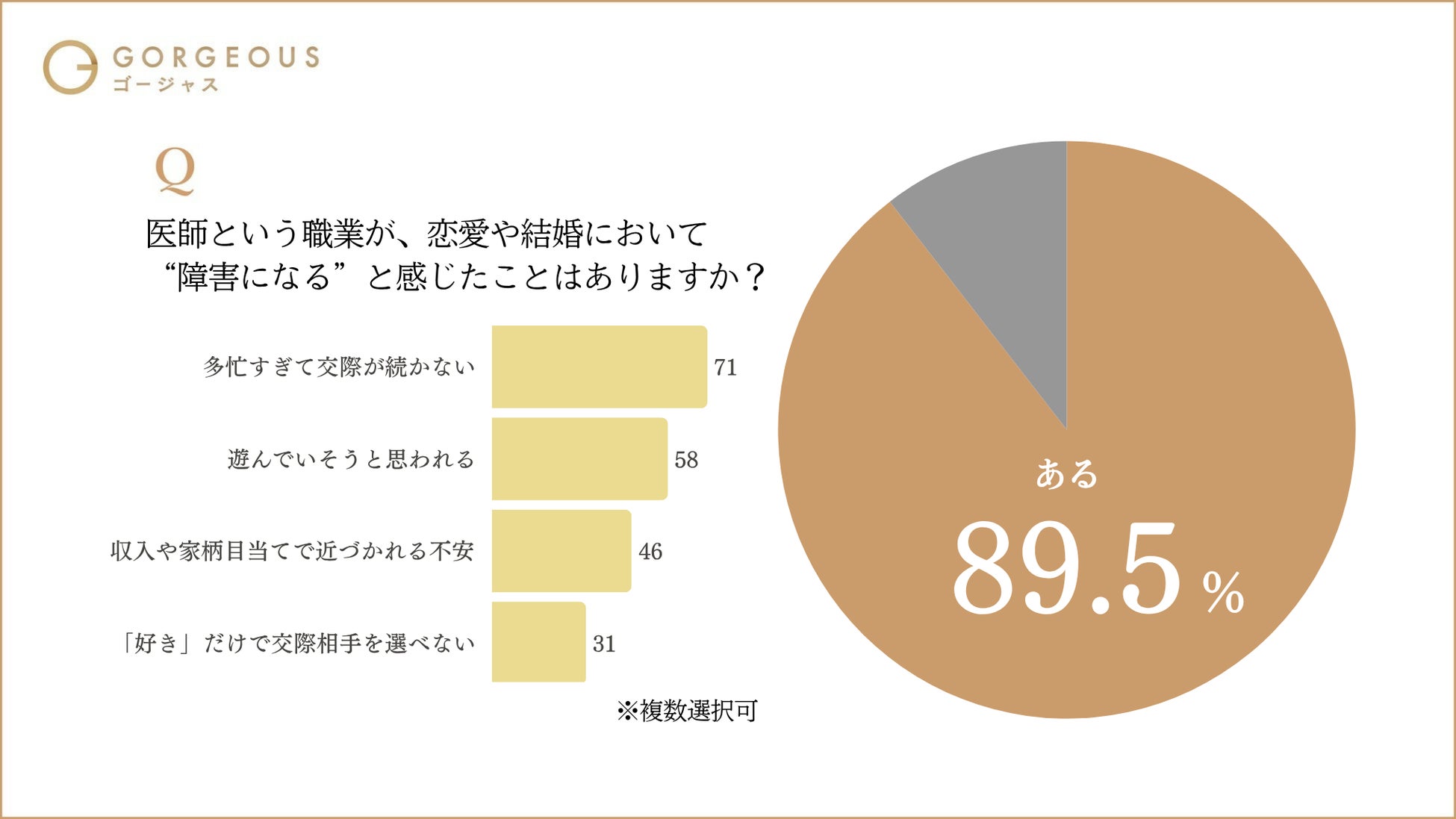 アイザック株式会社(本社:東京都渋谷区、代表取締役社長:田中和希)が運営する、完全審査制の恋活・婚活マッチングアプリ「ゴージャス」は、2025年6月に医師ユーザーを対象とした恋愛観・結婚観に関するアンケート調査を実施しました。