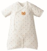 本商品は、子育てのお悩みの1つ、「赤ちゃんのお着替えが大変」という声から、それを軽減するために生まれたアカチャンホンポオリジナル商品「ドレスオール 肌着付」の5分袖バージョンです。
