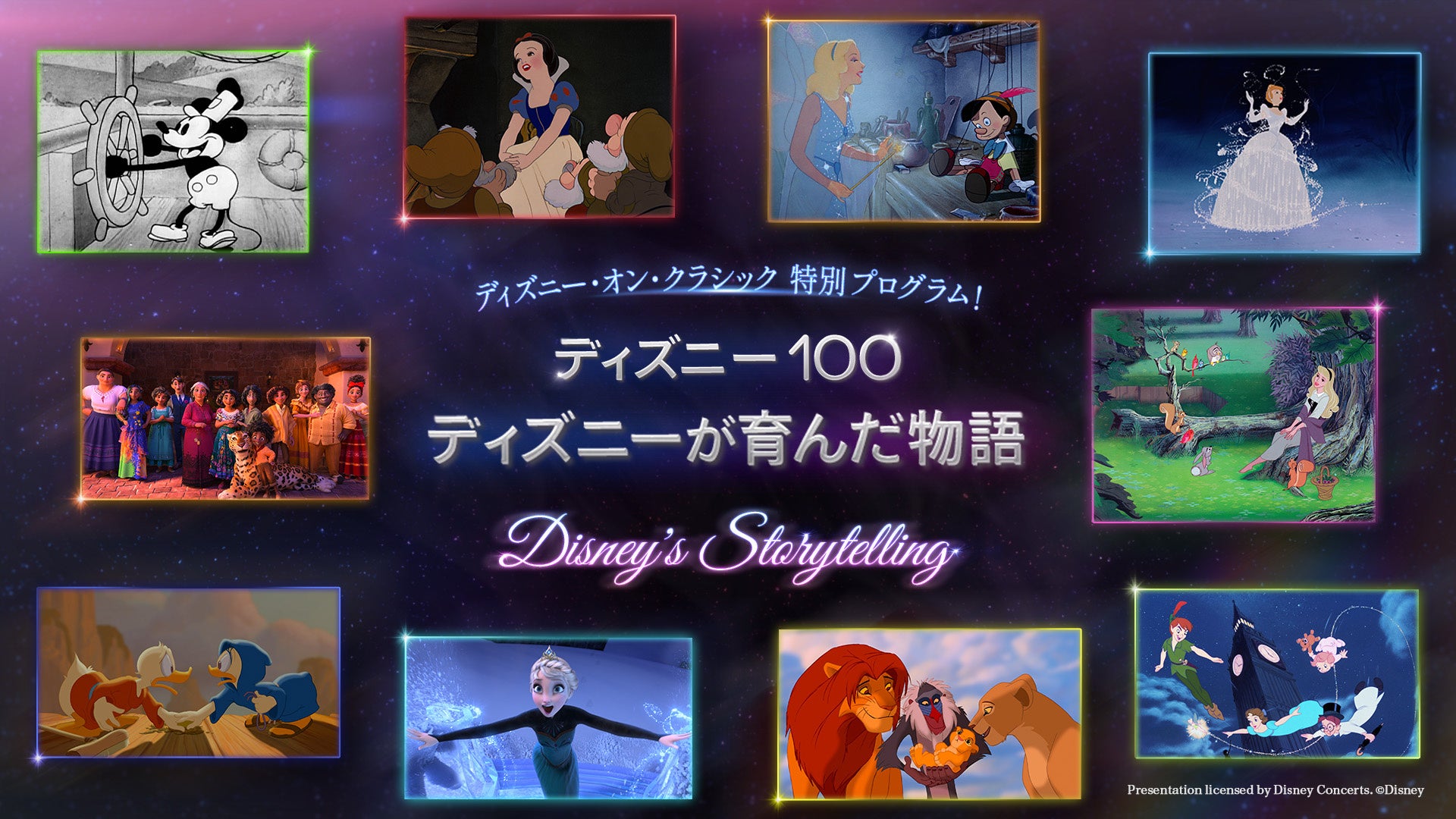 ミッキーマウスのスクリーンデビュー作『蒸気船ウィリー』や、“シリー・シンフォニー”シリーズより『花と木』、世界初の長編カラーアニメーション映画『白雪姫』、『ピノキオ』、『シンデレラ』、『ピーター・パン』、『眠れる森の美女』、『メリー・ポピンズ』のクラシック作品をはじめ、『リトル・マーメイド』、『ライオン・キング』、『ファンタジア/2000』、Disney/Pixar映画『トイ・ストーリー』、全世界で記録的な大ヒットとなった『アナと雪の女王』、まだ記憶に新しい『ミラベルと魔法だらけの家』、さらに『パイレーツ・オブ・カリビアン』、『スター・ウォーズ』、『アベンジャーズ』まで、ディズニーの歴史を彩ってきた19作品とともに、ディズニー・カンパニーの歩みを、映像・語り・音楽で紡ぎます。
