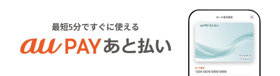 「au PAY あと払い」は、スマートフォンから簡単に申し込みができるバーチャルカード型の決済サービスです。購入代金を翌月以降にまとめて支払いができ、3回払いまで分割手数料が無料で利用できます。ネットショップでのオンライン決済のほか、Apple Payでの店頭タッチ決済にも対応し、幅広いシーンで活用できます。
