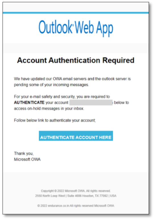 Outlookを装ったフィッシングメール – アカウント盗用の例