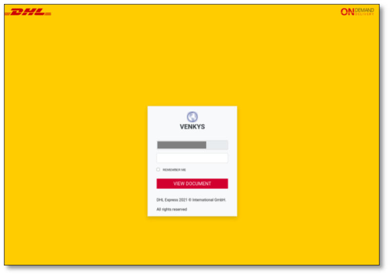 ■DHLを装ったフィッシングメール - アカウント盗用の例
