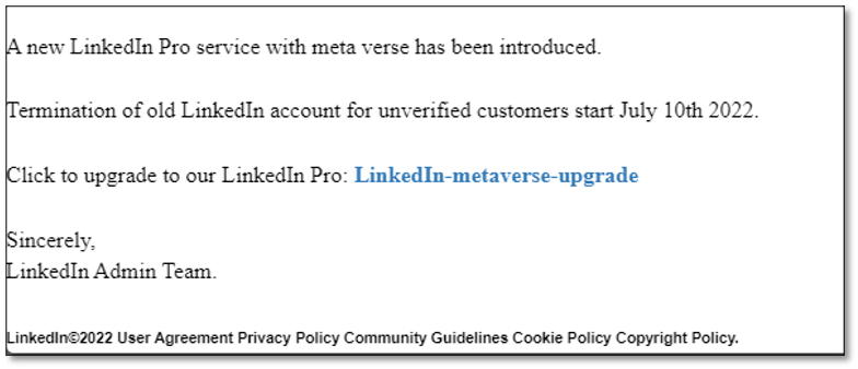 LinkedInを装ったフィッシングメール – アカウント盗用の例