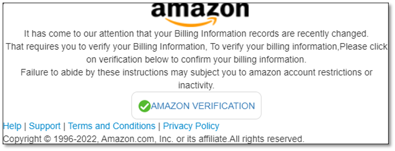 ■Amazonを装ったフィッシングメール - 請求情報の窃取の例