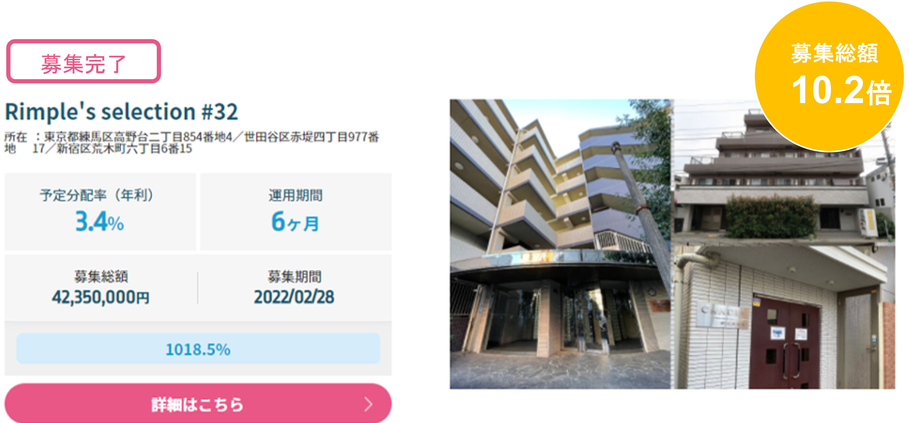 Rimple’s Selection#32募集総額1,018.5%の4.3億円の応募